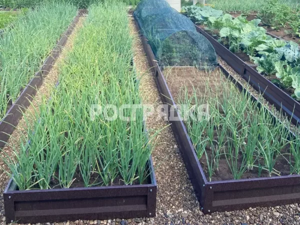 Грядки изготовлены из оцинкованного металла с полимерным покрытием толщиной 0,5 мм. Панели усилены 8 ребрами жесткости. Планка-стяжка через каждый 1 метр обеспечивает сохранность конструкции на долгие годы. Благодаря уникальной технологии, срок службы наших грядок составляет более 10 лет.